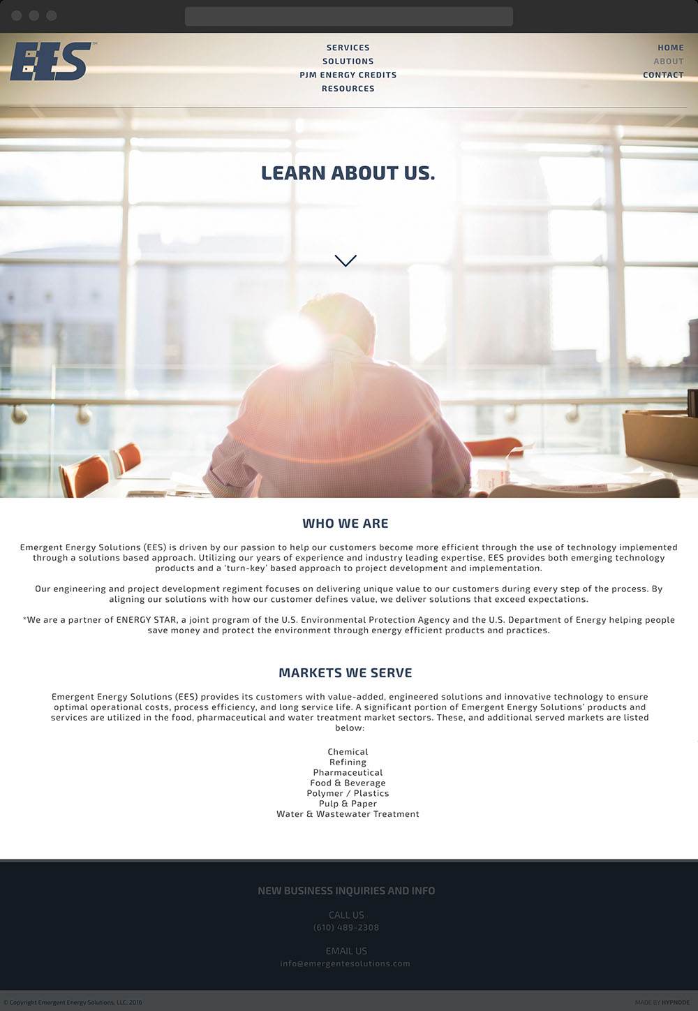 Emergent Energy Solutions is a multi-faceted company that innovates and delivers emerging energy services and solutions throughout various levels of the manufacturing and corporate sectors. Its primary operations are East-Coast based.